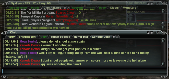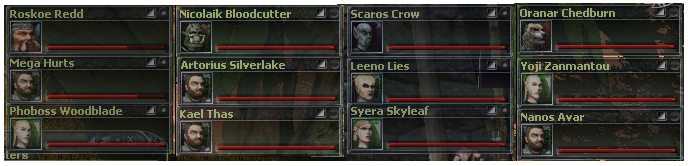 What is shown above is the first version of the party window, which was kind of wasteful in terms of screen real estate. At some point we sent out a patch which, among other things, made party windows look like this:
