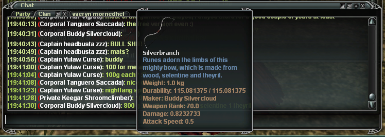 | A chat window with an item icon (offered by Corporal Buddy Silvercloud) and its tooltip. Click to enlarge. |