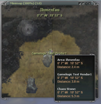 | The minimap with a tooltip showing all items found in the vicinity of the mouse cursor. |
