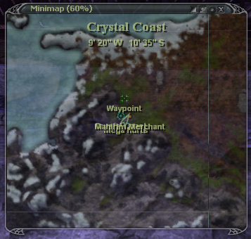 The component shown below is the minimap. It displays a small fraction of the world around the vicinity of the user, along with points of interest. You can zoom all the way in to 300% or out to 60%.