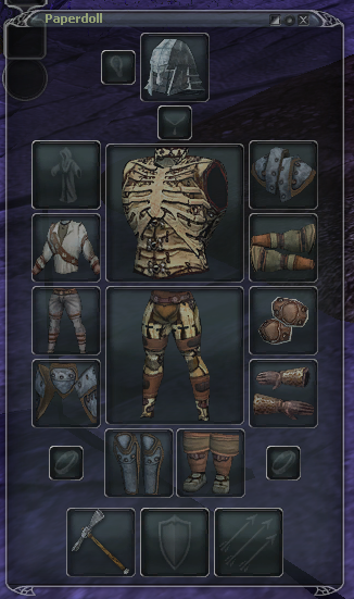Another frequently used window of Darkfall is the so-called Paperdoll Window. It has slots where the player can drop wearable items to wear them.