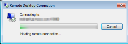 So, I am firing up a remote desktop (RDP) connection, and the little box appears saying that it is trying to connect: